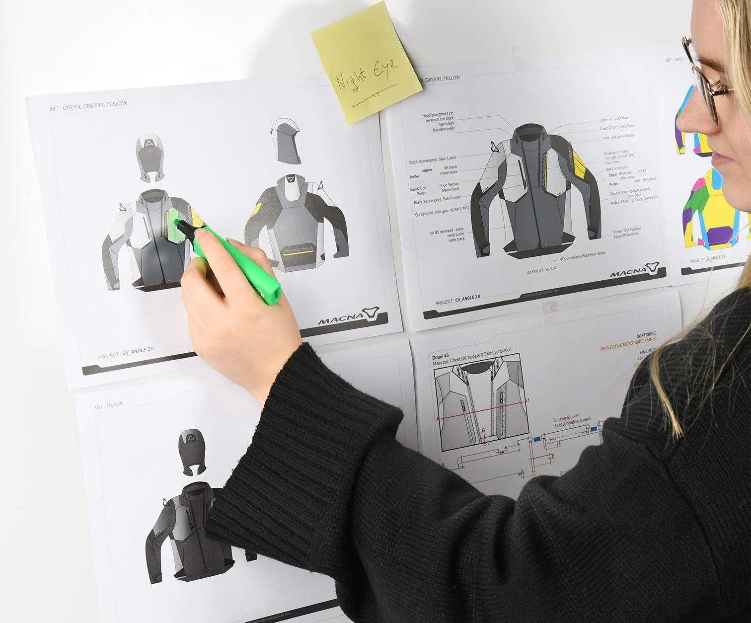 Night Eye™ is found in places that are easy to spot for other road users, such as the chest, shoulders, and outside of your arms and legs for example.