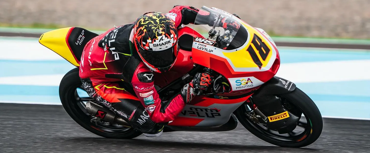 Born in 2005, Joel started his first racing season in the European Talent Cup of 2021. After two seasons, the Spaniard moved to the JuniorGP World Championship and eventually up to Moto3. As of 2026, he will line up on the grid for LevelUP-MTA alongside our very own Matteo Bertelle.
