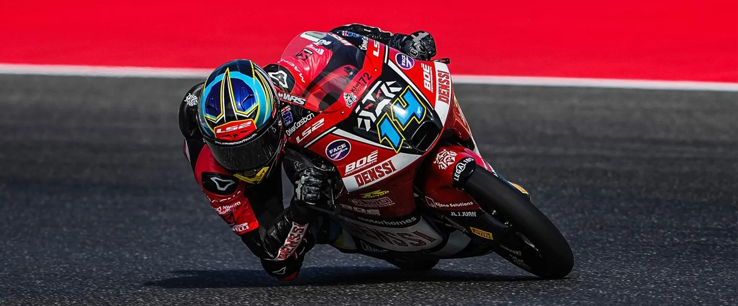 This talented rider was born in 2004 and participated in both Italian and Spanish competitions. He also took part in the Red Bull Rookies Cup for a few years before moving up to Moto3 in 2022. This step has been a bag of mixed feelings so far, due to multiple serious injuries which have limited development until now.