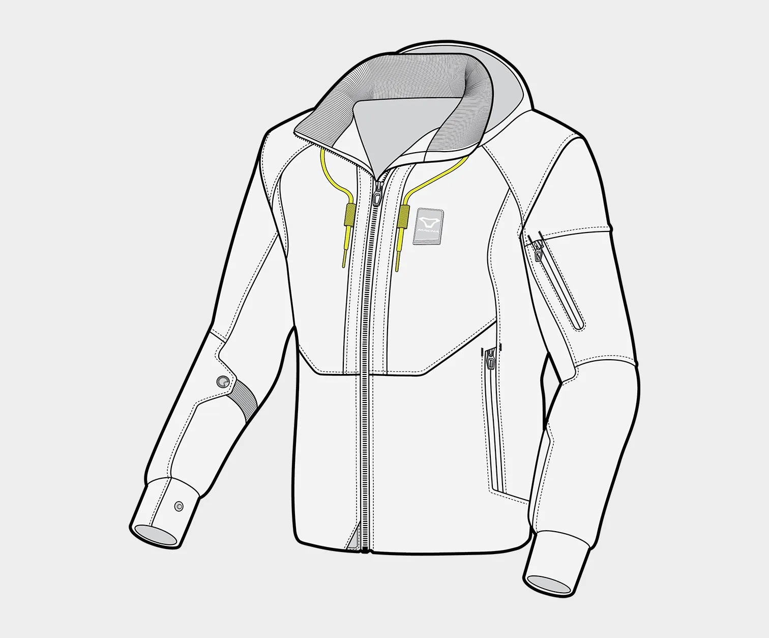 Imagine no more loose, floating layers in your jacket. Zipping up in a split-second without having to insert multiple times. Operating touch screens without taking your gloves off or getting rid of that flapping hood by fixing it at the back or zipping it off completely.